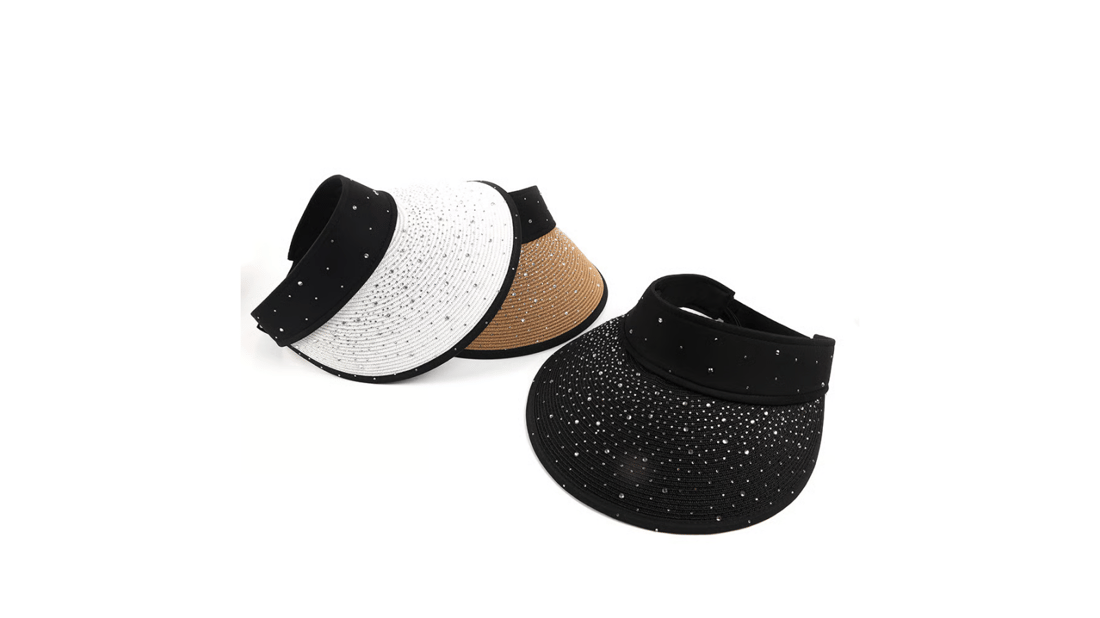 Constructed from tough paper grass straw, this visor hat offers resistance to wear and tear typical of beach use, such as exposure to sand, saltwater, and sun. Additionally, cleaning is straightforward—simply wipe the surface with a damp cloth to maintain its fresh and polished look without damaging the sparkling water diamond decorations.
